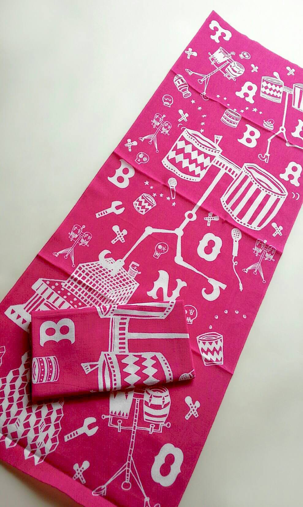タブラボンゴプレイヤー必須のタブラボンゴをモチーフにしたポップなデザインの手ぬぐいです。